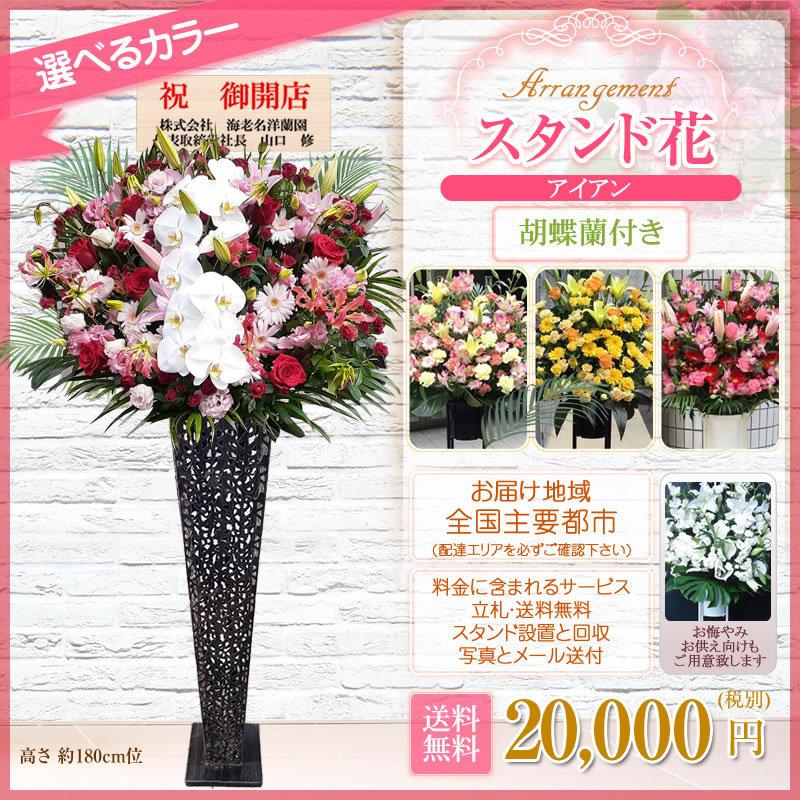 胡蝶蘭付きスタンド花 アイアン 花色選べる5色 000円 税別 180cm位 設置 回収無料 東京都 神奈川県 大阪府 お祝い 開店 開業 開院 花 Stde Ko 000 Iron スタンド花専門 海老名洋蘭園 通販 Yahoo ショッピング